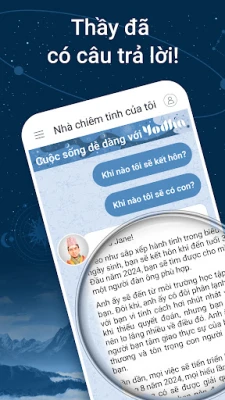 Bạn đang tìm kiếm sự rõ ràng trong cuộc sống, một kim chỉ nam để soi sáng con đường phía trước? Yodha mang đến cho bạn cầu nối trực tiếp đến trí tuệ cổ xưa, giúp bạn khám phá những bí ẩn của định mệnh và đưa ra các quyết định sáng suốt. Chỉ với vài thao tác, bạn sẽ nhận được những dự đoán sâu sắc và lời khuyên cá nhân hóa, được xây dựng dựa trên biểu đồ sinh học độc đáo của riêng bạn. Hãy để Yodha hé lộ bức tranh toàn cảnh về hiện tại và tương lai, giúp bạn nắm bắt mọi cơ hội quý giá.